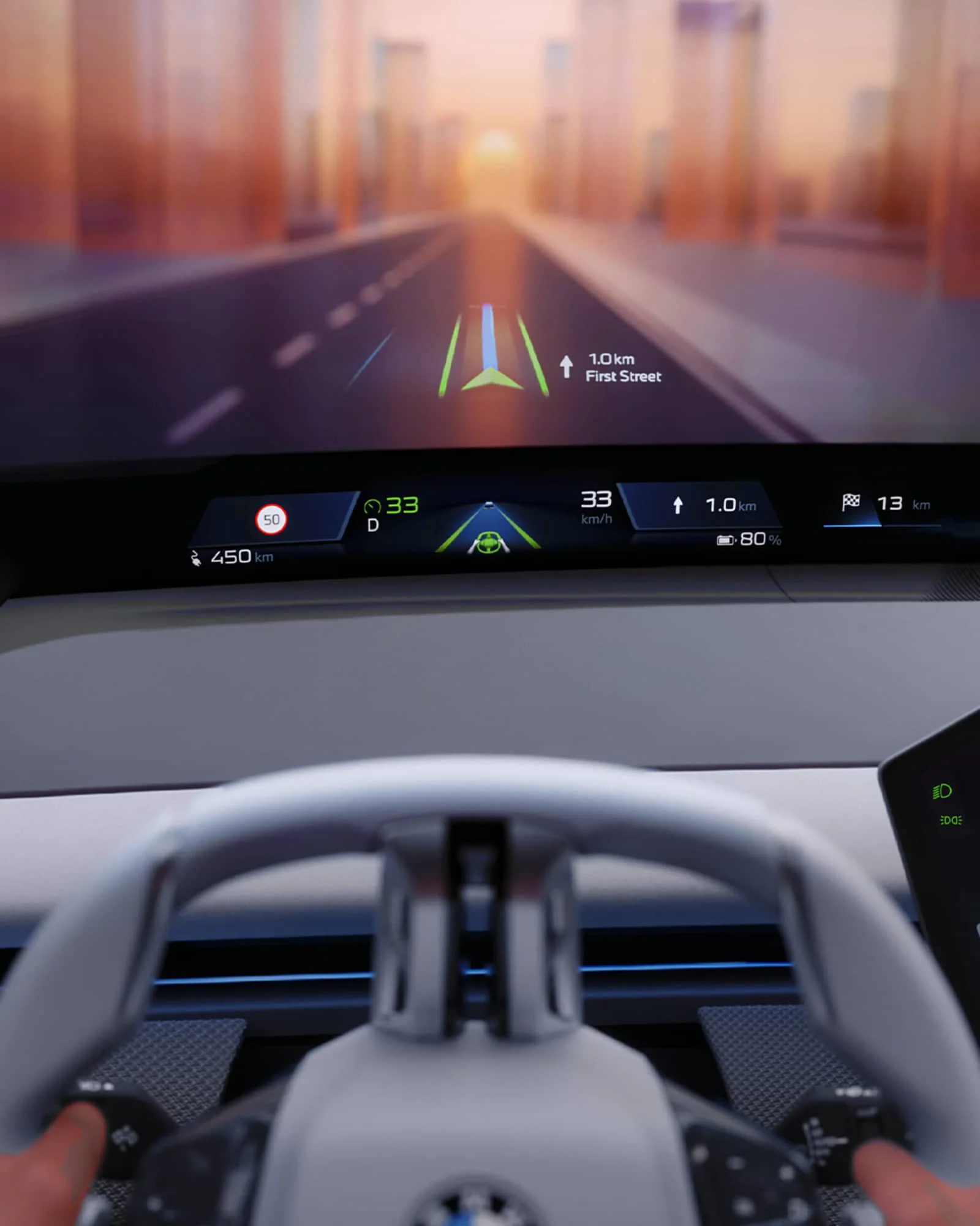 在汽車領(lǐng)域,多模態(tài)交互已成為部分車型標(biāo)配。寶馬 Panoramic Vision、現(xiàn)代摩比斯全風(fēng)擋全息 HUD 等設(shè)計,將整個擋風(fēng)玻璃下沿變?yōu)轱@示區(qū)域,結(jié)合增強(qiáng)現(xiàn)實(AR),將導(dǎo)航信息直接投射于路面。