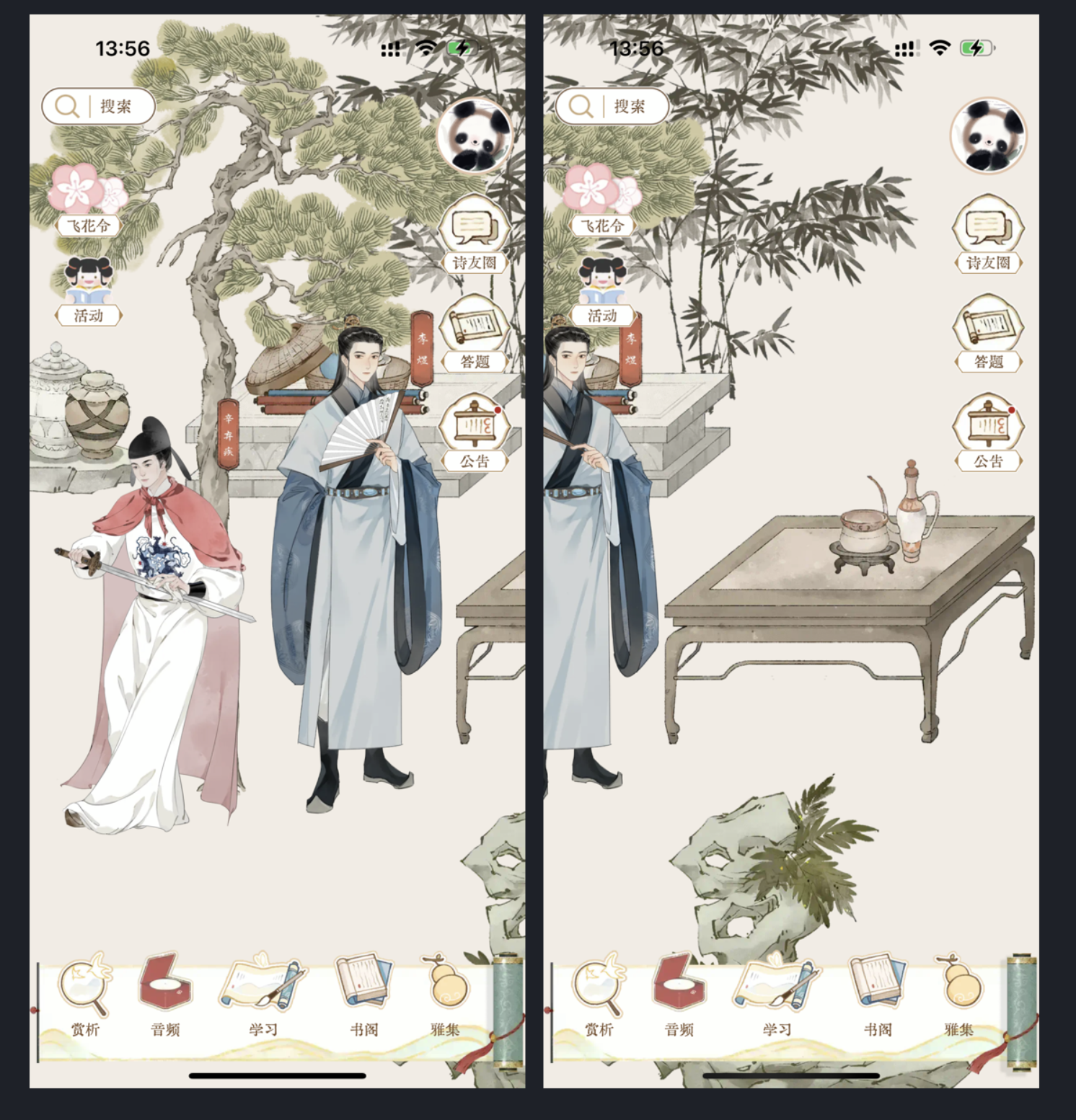 - 主界面以宣紙質感、山水暈染為底,功能入口化作印章、卷軸、扇面形態(tài);