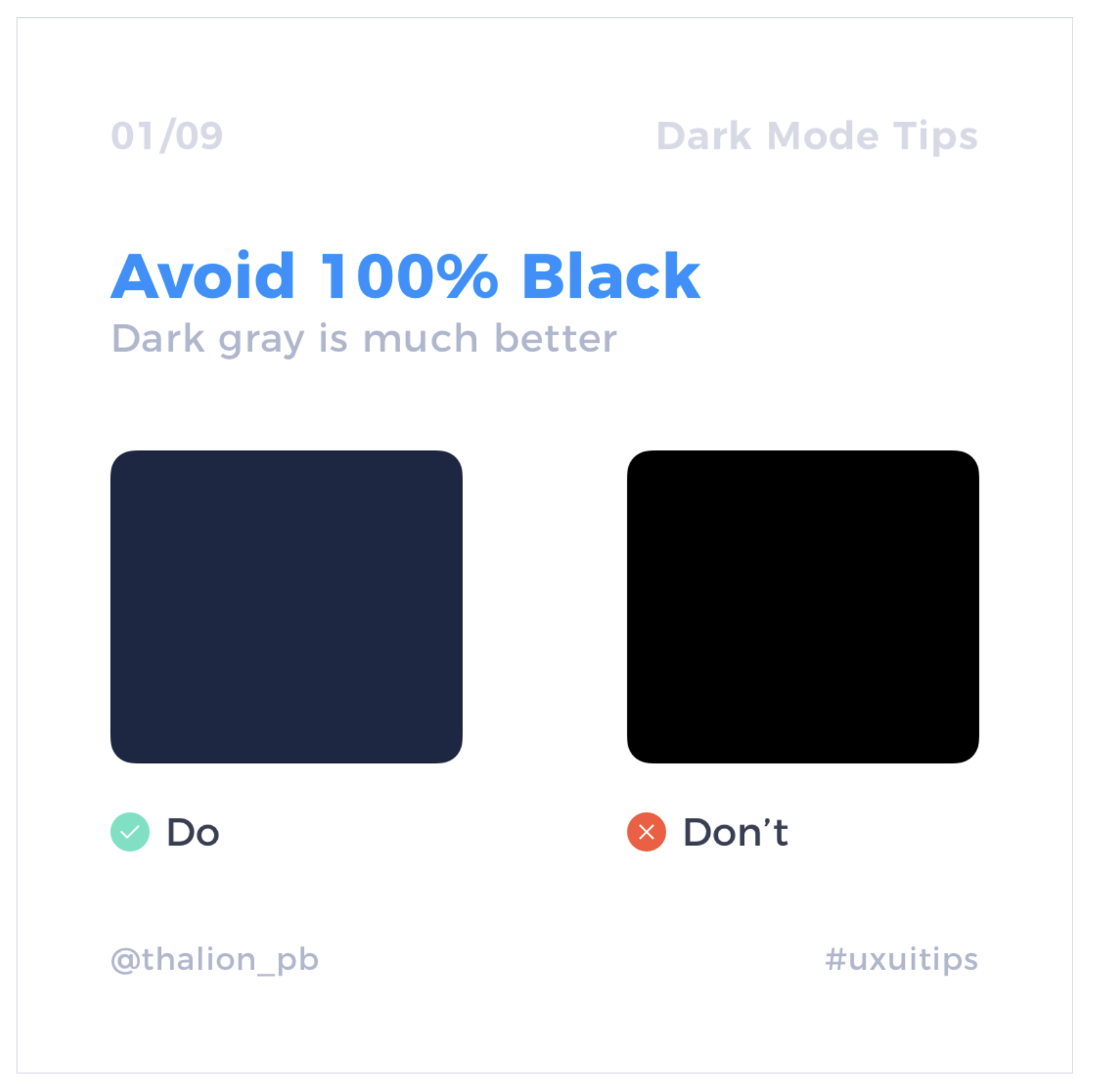 直接用 #000000 純黑會(huì)丟失層次、壓抑視覺,也不符合主流設(shè)計(jì)語言。