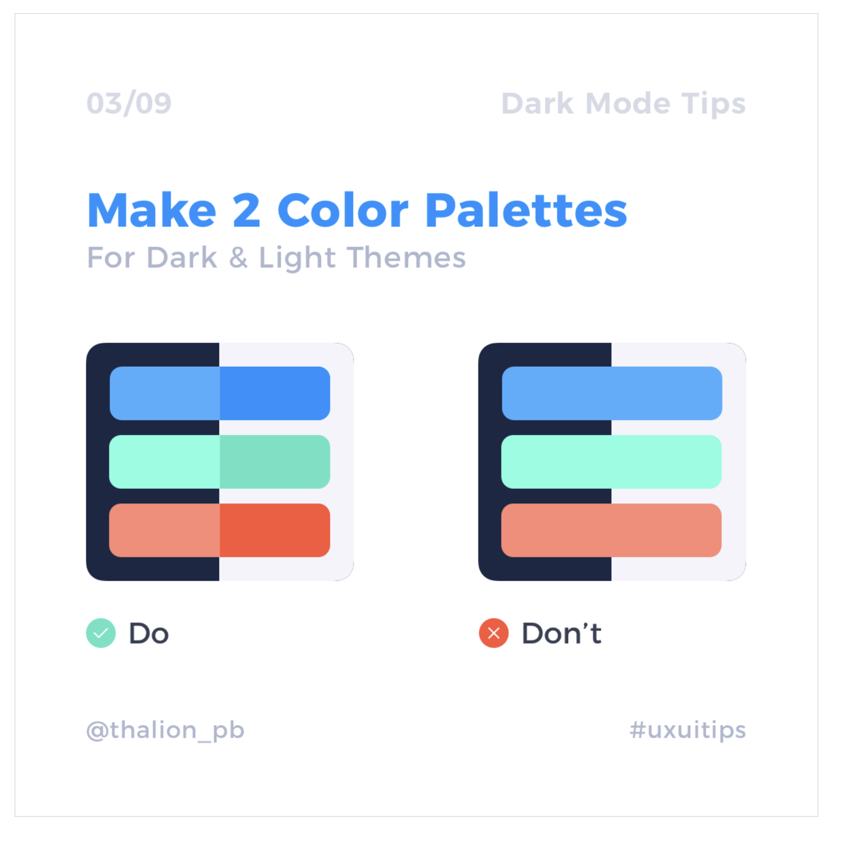 淺色模式的鮮艷色彩,直接搬到暗黑模式會(huì)違和、刺眼。