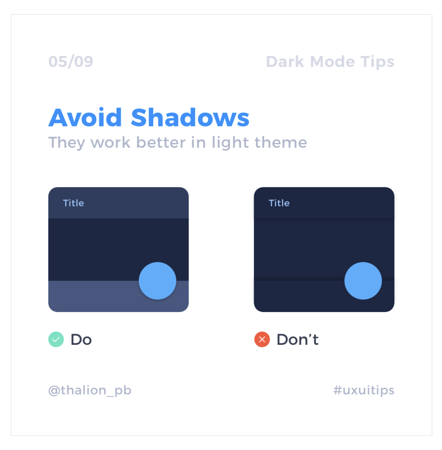 淺色模式常用陰影表達(dá)深度,但暗黑模式中陰影幾乎不可見。
