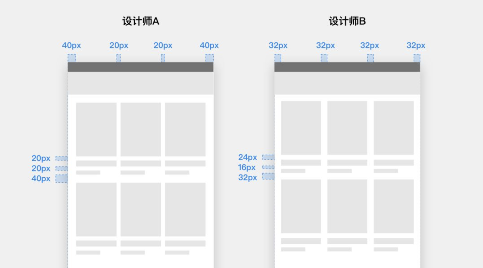 糾結(jié)圖標(biāo)用 20px 還是 24px、間距用 10px 還是 16px?有了網(wǎng)格,所有尺寸、間距都是最小單元格的整數(shù)倍,設(shè)計師有據(jù)可依,效率翻倍。