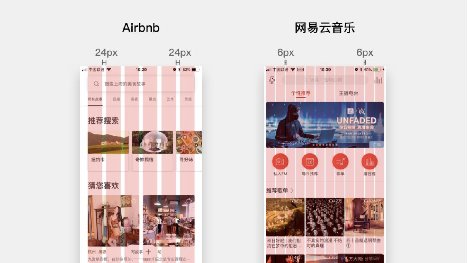 所有間距、尺寸、圓角、圖標(biāo)大小都必須是最小單元格的整數(shù)倍,形成穩(wěn)定視覺節(jié)奏。