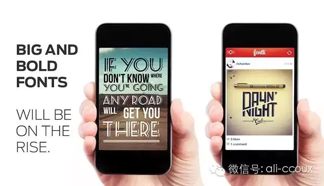 隨著滾動式瀏覽方式的普及,以內(nèi)容為核心的設(shè)計思路,在界面設(shè)計上會愈加明顯,沒有過多修飾的排版結(jié)構(gòu),不再盲目追求將很多內(nèi)容擠在一屏以內(nèi),反之是加大間距和行高,讓用戶的閱讀更加聚焦,享受到沉浸式體驗。大屏手機的流行,也促進了大字體在移動端APP上流行的節(jié)奏,大字體會賦予界面以層次,提高特定元素的視覺重量,讓用戶難以忘懷。字體夠大、夠優(yōu)雅、夠獨特、夠貼合,也就能提升頁面的氣質(zhì)和特色,而這正是移動端APP設(shè)計的另外一次重要的機會。