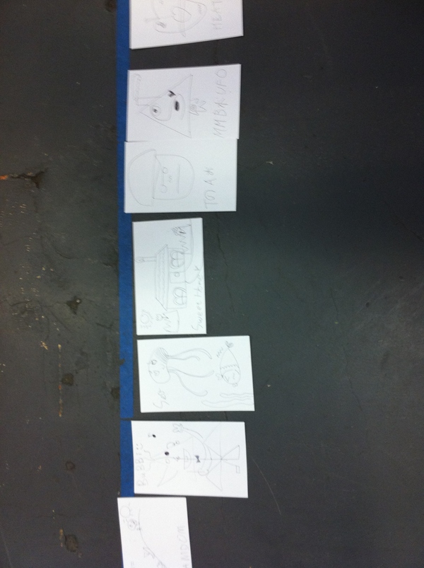 (然后是升級(jí)版,所有人一個(gè),一人一筆去創(chuàng)造一個(gè)人物,還要給它命名。這個(gè)很有意思,因?yàn)闀?huì)得到完全意料不到的結(jié)果,而越到后面卻越有默契,能“感應(yīng)”得到大家都在往一個(gè)方向走,最后起的名字似乎就都是大家所希望的)