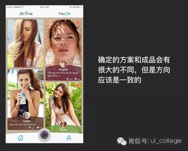 經(jīng)過用戶驗證后我們的想法就更明確了,加上之前的一步步推演我們確定了方案2就是我們整個App最終的設(shè)計風(fēng)格方向,當(dāng)然這不是最終效果圖,而是確定了后我們的設(shè)計師就會根據(jù)整個方向去完善細(xì)節(jié)輸出,真實的定稿還需要考量很多因素。