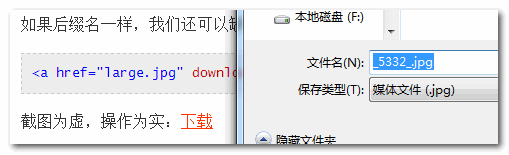 例如,我們希望點(diǎn)擊“下載”鏈接下載圖片而不是瀏覽,直接增加一個download屬性就可以: