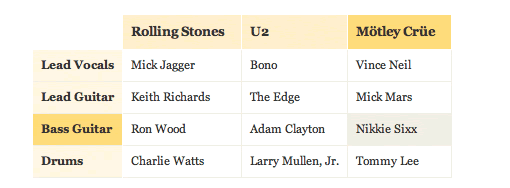 一如以往,我們從最明顯的地方開始。第一步是決定表格的整體結(jié)構(gòu)。結(jié)構(gòu)取決于呈現(xiàn)數(shù)據(jù)的類型和復雜性。選擇 垂直的列還是水平行,通常取決于個人偏好。大致規(guī)劃下表單的內(nèi)容,然后決定采取哪種方法能更好地傳遞信息。很顯然,如果信息包含多變量,那么選擇矩陣來表示。下面分別以幾個簡單案例來開始。