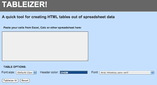 我偶然發(fā)現(xiàn)了一個小的web應(yīng)用程序:Tableizer ,它可以把Excel里的表格粘貼進來轉(zhuǎn)換成HTML。利用這種方式你仍然需要自己寫一些樣式,但是會節(jié)省前期的表格構(gòu)建時間。