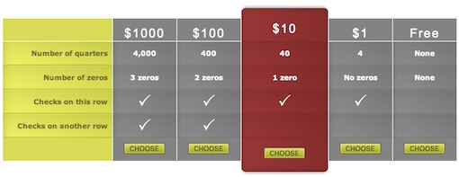 這里是“Ask The CSS Guy”里的另一個例子,允許用戶選擇表格的給定列(價格表),當前選擇會高亮突出顯示,并且能展開顯示更多信息。這種方式和上一個例子是一致的,但是有不同的效果。查看demo 具體實現(xiàn)請點擊: