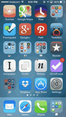 Apple iOS系統(tǒng)的UI設計中就很好的利用了這些有意義的過渡動效。下面的案例中,用戶點擊文件夾或者APP,圖標當大擴展到整個屏幕,展現(xiàn)出細節(jié)和詳情。