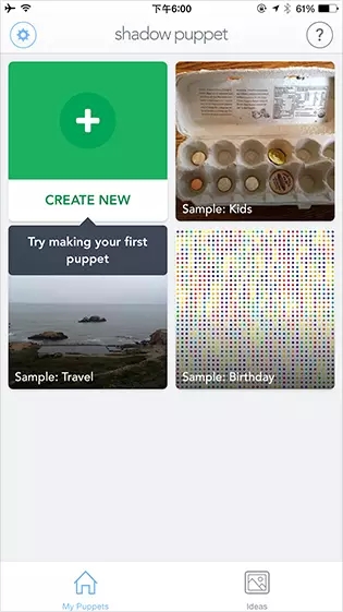 Shadow Puppet可以把照片和視頻剪輯結(jié)合聲音、貼紙等制作成動(dòng)畫,制作簡(jiǎn)單,被譽(yù)為視頻版的PPT。它的首頁(yè)預(yù)置了展示用的視頻樣本,用戶可以通過(guò)觀看視頻案例對(duì)Shadow Puppet的視頻制作有感性的認(rèn)知。
