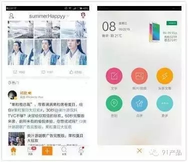 適用于非常重要且用戶操作頻繁適用的功能點(diǎn),將這些功能點(diǎn)匯聚,放在底部tab的中間或者右邊(根據(jù)app的具體功能確定)