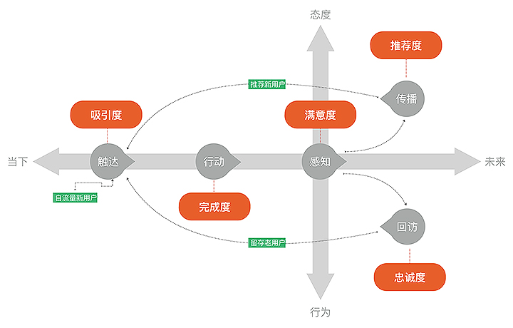 以上這3點(diǎn)是我們設(shè)計人員在工作中需要看數(shù)據(jù)的原因。但在設(shè)計工作中,數(shù)據(jù)使用主要關(guān)注2個方面,一個是看什么數(shù)據(jù),另一個是如何使用數(shù)據(jù)。設(shè)計師看什么數(shù)據(jù),我們根據(jù)用戶體驗(yàn)設(shè)計目標(biāo)與產(chǎn)品生命周期,形成了用戶體驗(yàn)的“5度”模型,即吸引度、完成度、滿意度、忠誠度、推薦度。不同產(chǎn)品的5度具體指標(biāo)要根據(jù)產(chǎn)品實(shí)際情況來定義,今天我就不展開來講了,詳細(xì)可以查看阿里UED博客或《U一點(diǎn)料》