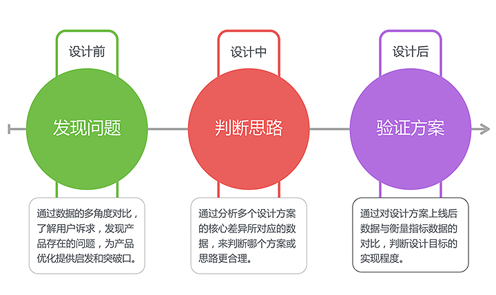 (3)設(shè)計后用于驗(yàn)證設(shè)計 通過計算上線后的產(chǎn)品數(shù)據(jù),對比設(shè)計前設(shè)定的指標(biāo)數(shù)據(jù),判斷設(shè)計目標(biāo)的實(shí)現(xiàn)程度。