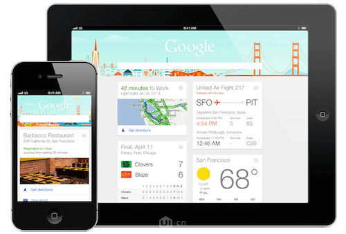 我們都知道你的app和網(wǎng)站在不同的設(shè)備下保持適配是一件很重要的工作。而卡片式設(shè)計(jì)就能很好的幫助我們來完成這一點(diǎn)。卡片式設(shè)計(jì)從根本上來說就是將頁面內(nèi)容進(jìn)行分解,然而再整合一個(gè)無法再進(jìn)行分解的元素。而響應(yīng)式設(shè)計(jì)要求的就是我們可以根據(jù)屏幕尺寸的大小對(duì)頁面內(nèi)容就行調(diào)整??ㄆ皆O(shè)計(jì)就可以對(duì)頁面內(nèi)容進(jìn)行分割重組來適應(yīng)不同的屏幕。比如這個(gè)Google在手機(jī)設(shè)備上顯示一個(gè)卡片,pad端顯示兩個(gè)卡片。