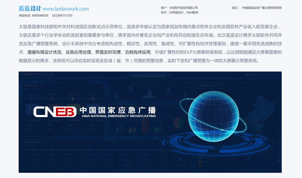 北京藍(lán)藍(lán)設(shè)計作品: 太極集團承接的中央臺應(yīng)急指揮中心大屏