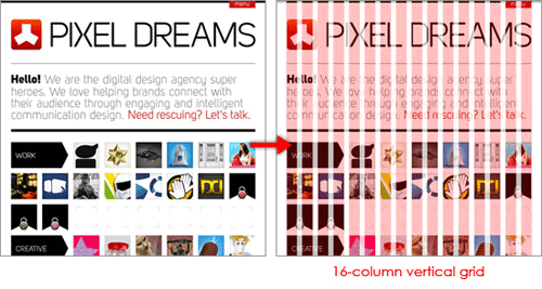 花時(shí)間觀察一些簡潔風(fēng)格的網(wǎng)站 ,你會(huì)發(fā)現(xiàn)它們當(dāng)中的絕大多數(shù)都有用到經(jīng)過良好規(guī)劃的網(wǎng)格布局系統(tǒng)。如果哪位朋友對網(wǎng)格布局還不大了解的話,可以設(shè)想一下,在著手進(jìn)行實(shí)際的視覺設(shè)計(jì)工作之前,使用輔助線將頁面劃分為若干等寬的列,通過這種方式對頁面結(jié)構(gòu)及元素的布局進(jìn)行更精準(zhǔn)的規(guī)劃。網(wǎng)格布局可以使設(shè)計(jì)方案當(dāng)中的信息結(jié)構(gòu)更加清晰,在視覺上具有強(qiáng)烈的節(jié)奏感與一致性。