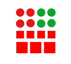 相似原則 強(qiáng)調(diào)的是內(nèi)容。人們通常把那些明顯具有共同特性(如形狀、大小、顏色等)的事物組合在一起,即:相似的部分在知覺(jué)中會(huì)形成若干組。下圖中,根據(jù)形狀,我們將其看成圓形和方形;根據(jù)大小,我們又可將方形看成大方塊和小方塊;根據(jù)顏色,我們可以將圓形看成紅色和綠色兩個(gè)整體。