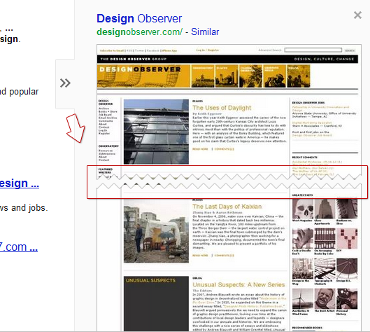 下圖Google搜索結(jié)果的預(yù)覽,過(guò)長(zhǎng)的頁(yè)面進(jìn)行撕裂處理,瀏覽者依然把它看成是一個(gè)頁(yè)面,而且還是一個(gè)很長(zhǎng)的頁(yè)面。