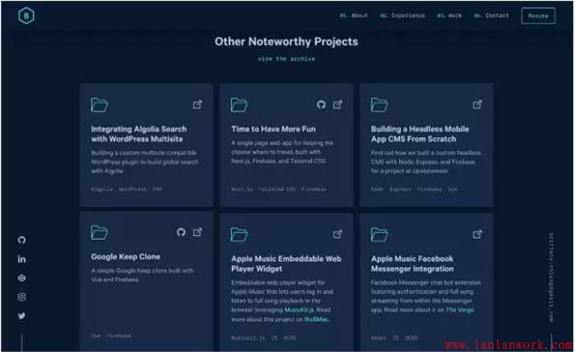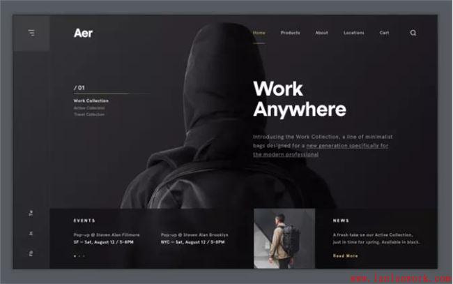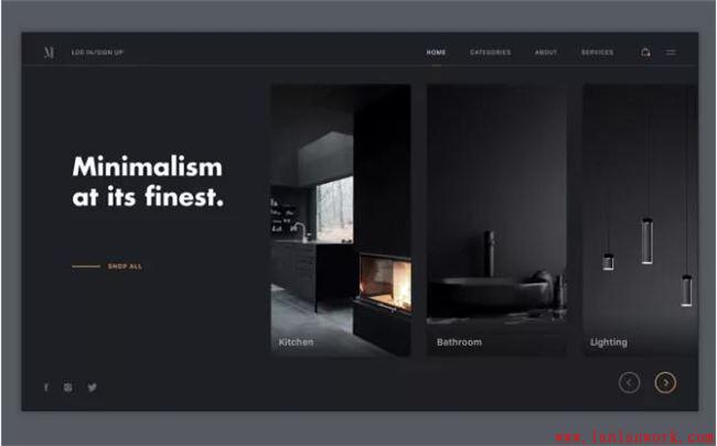 這兩個極簡主義的暗黑主題網(wǎng)站都使用了粗體字體。小心地使用單一強調(diào)色的陰影,以符合暗黑模式UI設計原則。