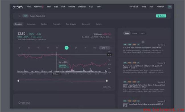 Atom Finance為復雜的外觀使用了黑色主題,并將顏色限制為三種。布局使用負空間,極簡設計。該網(wǎng)站使用微妙的陰影很好地表明不同的組件在用戶界面標高。