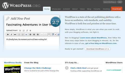 WordPress 為頁(yè)面中的鏈接 “Download(下載)” 使用了對(duì)比色。 這種紅色在冷灰色調(diào)的頁(yè)面中自己跳了出來(lái)。但這紅色在明度方面有所收斂,避免了影響頁(yè)面整體效果。