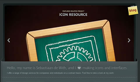 Icon Designer 通過(guò)旋轉(zhuǎn)某些元素讓自己與眾不同。這一頁(yè)面很容易成為稀松平常的無(wú)聊之作,但簡(jiǎn)單的幾個(gè)旋轉(zhuǎn)讓它趣味十足。