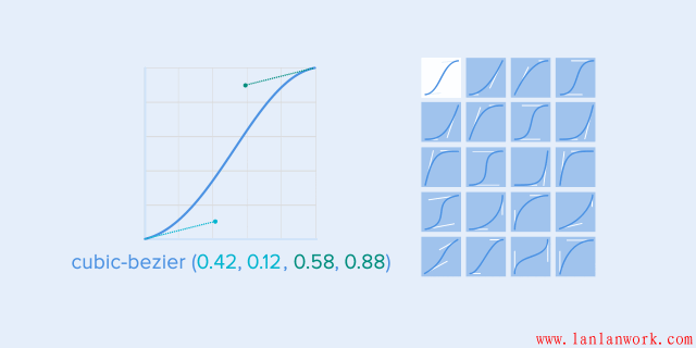 有一個(gè)立方貝塞爾函數(shù)常用來描述這種速度曲線。之所以叫立方是因?yàn)樗腔?個(gè)點(diǎn)來的。第一個(gè)點(diǎn)在坐標(biāo)軸中是(0,0)(左下),最后一個(gè)點(diǎn)是(1,1)(右上)。