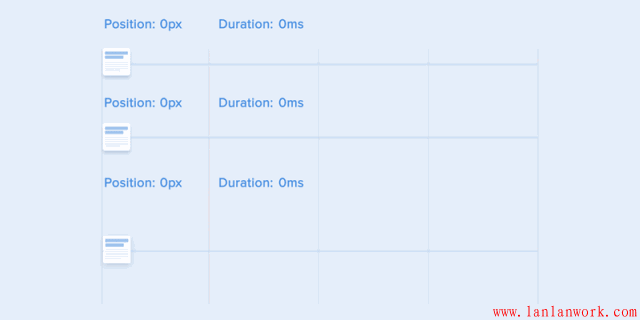 物體沿曲線移動(dòng)的路徑必須與滾動(dòng)界面的方向重合。例如,在下面的例子中,我們可以上下滾動(dòng)界面,相應(yīng)地,卡片以垂直的方式展開更合適——先向右,然后向下。