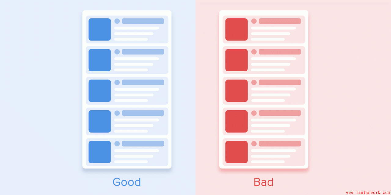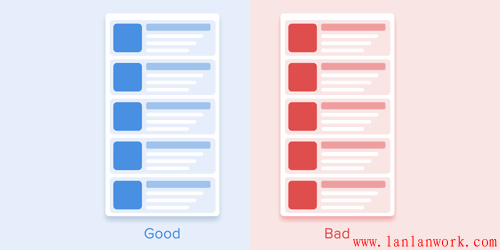 列表項(xiàng)的出現(xiàn)應(yīng)該只允許有一個(gè)短暫的延遲。每一個(gè)新列表項(xiàng)的出現(xiàn)間隔應(yīng)該在20-25ms之間。元素出現(xiàn)太慢的話,會(huì)讓用戶感到很不爽。