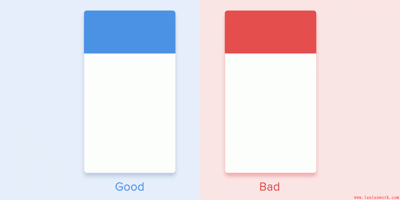 還需要記住的一點(diǎn)就是,無論在什么平臺(tái),動(dòng)畫的持續(xù)時(shí)間不僅跟它的移動(dòng)距離有關(guān),還跟它本身的大小有關(guān)系。小的元素或者變化不大的動(dòng)畫應(yīng)該要移動(dòng)的更快,而大的元素或者復(fù)雜的元素持續(xù)時(shí)間稍長(zhǎng)一些看起來會(huì)更好。