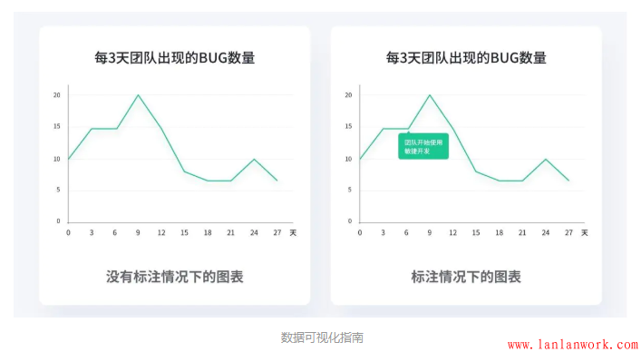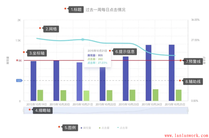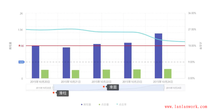 數據產品不要試圖去掩蓋問題,而要反映真實數據,暴露問題,并且和用戶一同解決。比如對數據閾值進行監(jiān)測,預警線就是很友好的可視化方式。