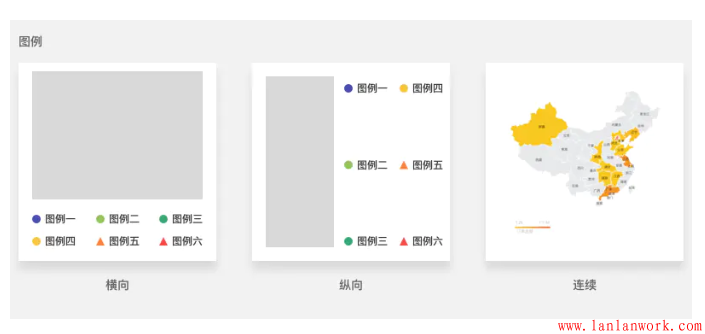 5.圖例。離散型數據包括橫向排列和縱向排列,連續(xù)型數據包括連續(xù)圖例。