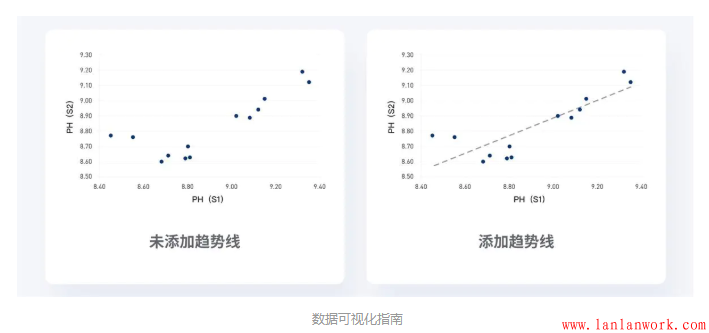 (1)根據數據特點選擇橫縱向輔助線,橫向引導線增強水平方向的導視??v向引導線增強垂直方向的導視。