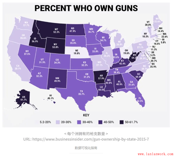 以下是美國各州擁有槍支人數占總人數的百分比統計圖。