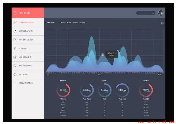 1)深色背景。適合較少信息內容。