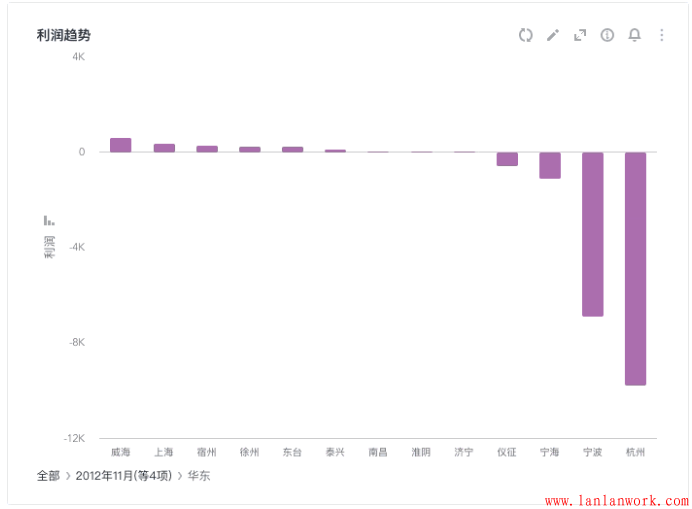 3.數據鉆取。單擊某個數據可以看到該數據的詳細信息,變換分析的粒度。