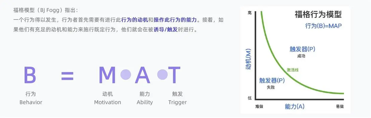 在明確教育本質后,再來看學習行為。從經典的動機理論模型(福格模型)來看,學習行為的構成需要 3 個要素,動機(Motivation)、能力(Ability)和觸發(fā)(Trigger),三者缺一不可。