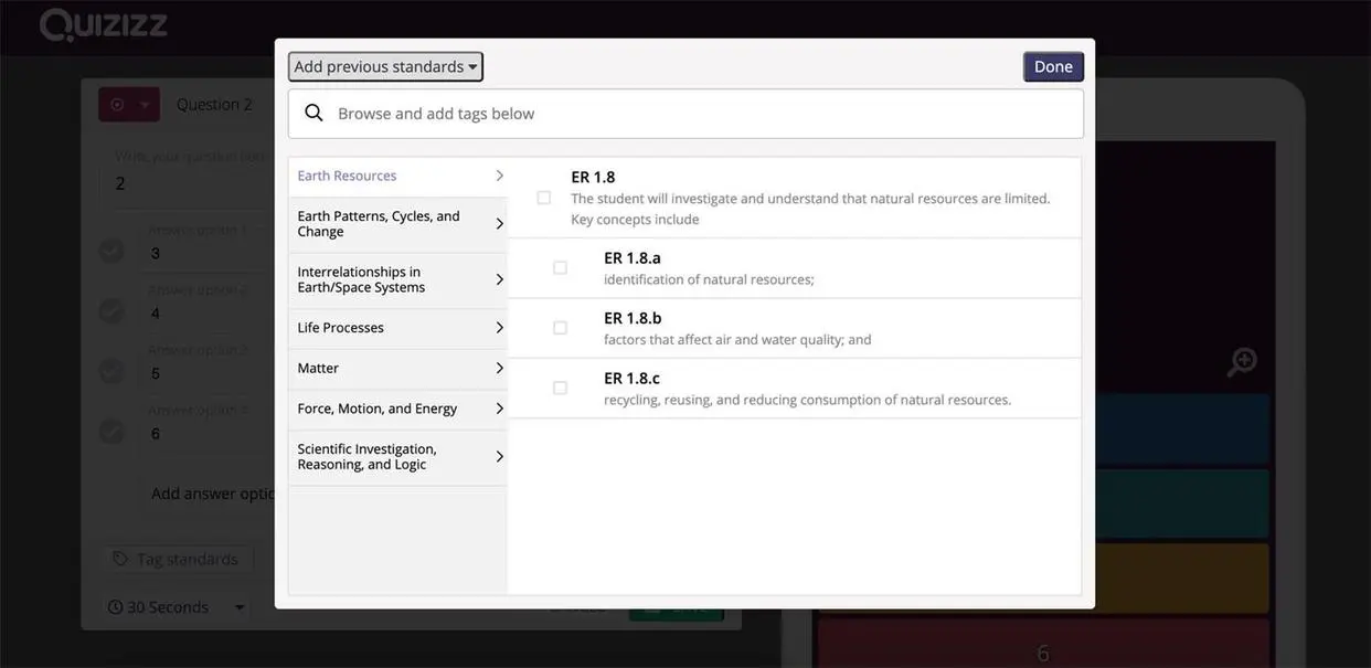在海外的教育軟件 Quizizz 中,老師可以關聯(lián)知識點,并設置難易程度,幫助用戶根據(jù)自己的學習水平選擇合適的題目: