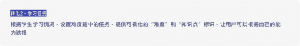 因此,高自我效能的正向循環(huán)對于學生用戶來說很重要,從產品/設計層,能夠考慮的是: