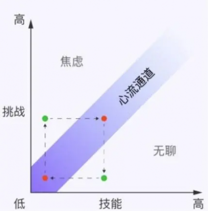 當挑戰(zhàn)程度適中時,用戶可以更容易獲得成功+正向反饋,結合自我效能,就能實現(xiàn)正向循環(huán)。