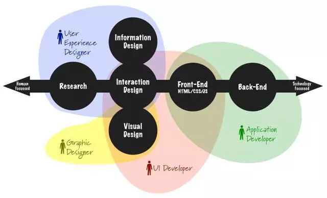 圖五:從工作職責(zé)來解釋差異, UX的范圍很廣,很少人可以精通全部,可以說幾乎沒有。