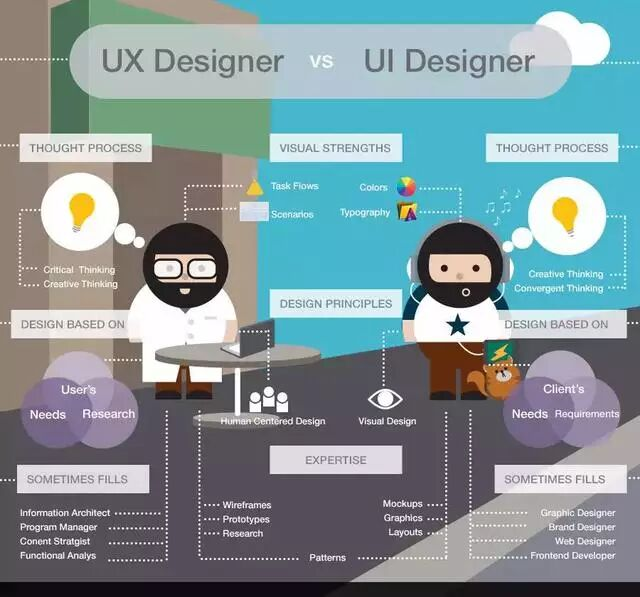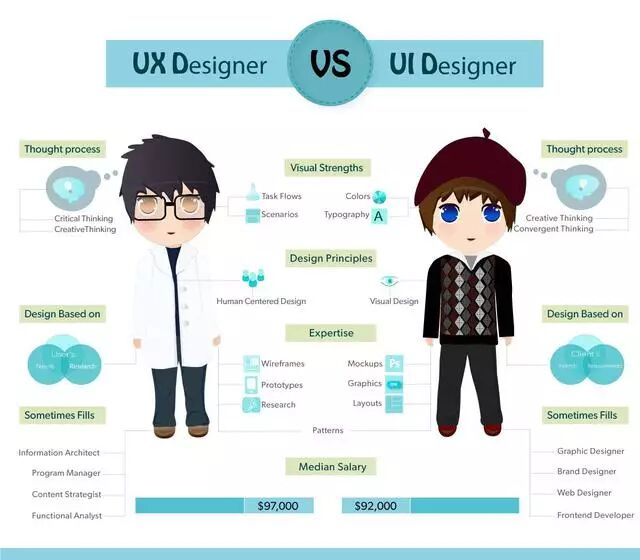 總結(jié):UI設(shè)計(jì)是展現(xiàn)視覺層面的(界面),而UX是使用過程中的情感(互動(dòng)與體驗(yàn))。UX設(shè)計(jì)師不僅關(guān)注界面的設(shè)計(jì),更關(guān)心所有會(huì)影響使用者體驗(yàn)的一切。如架構(gòu)、互動(dòng)、內(nèi)容與及使用者對象、需求、價(jià)值觀。