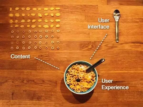 圖十:UI是用來取內(nèi)容的工具,使用者使用UI吃完東西(內(nèi)容)的體驗(yàn)是UX。