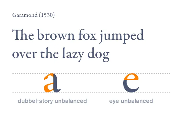 Garamond是法國傳統(tǒng)風(fēng)格,始于1530年,它對比劃的幾何比例和平衡有著超前思考,其中的字體粗細(xì)交錯(cuò)帶來了動(dòng)態(tài)的平衡和易辯性。