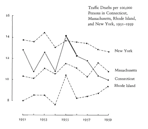 一個(gè)誠實(shí)的設(shè)計(jì)產(chǎn)品絕不能聲稱它并沒有的功能,絕不能吹噓。對于很多人來說,”設(shè)計(jì)”和”誠實(shí)”是兩個(gè)很難放在一起的詞,但是誠實(shí)對于設(shè)計(jì)來說太重要了,拿我們都相信的數(shù)據(jù)圖表來說,如果你覺得,一個(gè)數(shù)據(jù)或者一個(gè)圖表是最力的證據(jù),是無可爭辯的,那你就錯(cuò)了,圖表也可以撒謊。信息設(shè)計(jì)和數(shù)據(jù)可視化之父 Edward Tufte 在他的書“The Visual Display of Quantitative Information” 中說,當(dāng)電視里的產(chǎn)品或者圖表說謊的時(shí)候,這個(gè)謊言就會(huì)被擴(kuò)大千萬倍。如果紐約時(shí)報(bào)的報(bào)道插入了說謊的圖表,那么這個(gè)謊言就被擴(kuò)大了幾百萬倍。書中有這么一個(gè)圖,圖中表示施行限速前后交通死亡數(shù)量的變化。