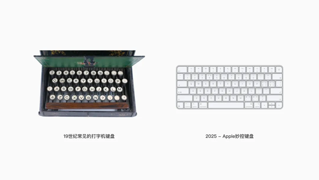 1941 年,世界上第一臺電子計算機誕生;1968 年,第一只鼠標(biāo)原型問世。然而,與它們共同構(gòu)成人機交互基礎(chǔ)的 QWERTY 鍵盤,其布局早在 1874 年就已獲得大規(guī)模應(yīng)用。