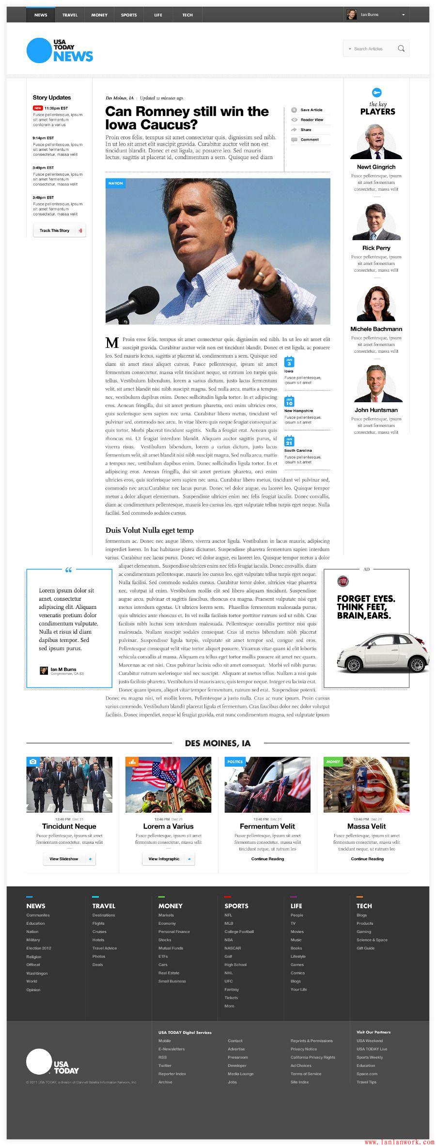新聞類的網(wǎng)站就是以內(nèi)容為主的,因此我們要把重點(diǎn)放在文章的內(nèi)容上。醒目的標(biāo)題最能引起用戶的注意,因此要把新聞標(biāo)題設(shè)置的醒目而且放在最顯眼的位置。文章的內(nèi)容要求精、簡,提取新聞的精華簡單的提供主要的信息。精簡用戶閱讀的內(nèi)容的時間,讓用戶關(guān)注網(wǎng)站上更多的其他內(nèi)容,延長用戶停留在網(wǎng)站上的時間。最后我們來看內(nèi)容的時效性。新聞的時效性尤其重要,大家都喜歡了解最新的新聞動態(tài),因此及時的更新網(wǎng)站,及時的提供最新的新聞,讓更多的用戶看過來!