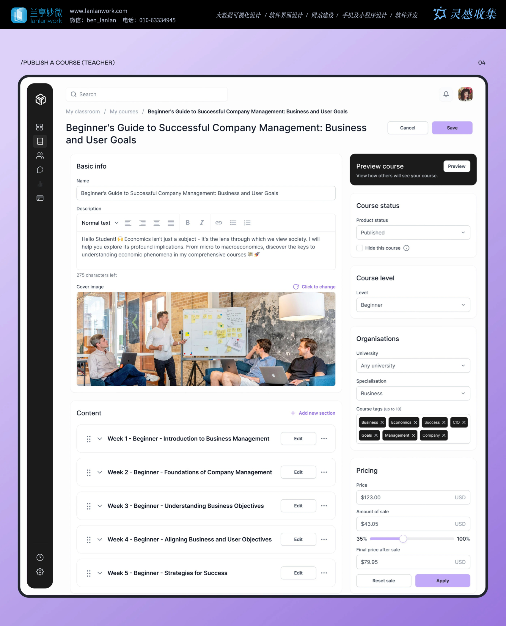 網(wǎng)站采用側(cè)邊欄加主內(nèi)容區(qū)的布局。左側(cè)側(cè)邊欄列出 "Dashboard (儀表盤)""Courses (課程)""Teachers (教